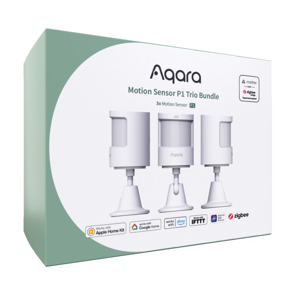 This bundle included 3pcs Aqara Motion Sensor P1. The sensor detects body motion and the state of ambient light. If there are any people moving or any change in the ambient light state in the areas under detection*, the motion sensor will send notice to the Aqara Home app (iOS/Android) through the connected Aqara Zigbee 3.0 Hub or link to other devices.
