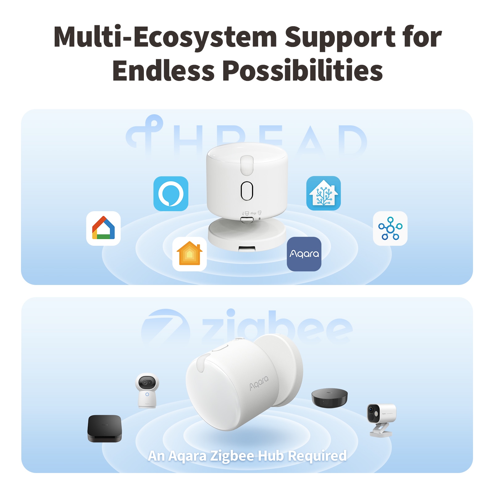 Supports both Thread and Zigbee protocols, can join Aqara Home or third-party supported Matter ecosystems.